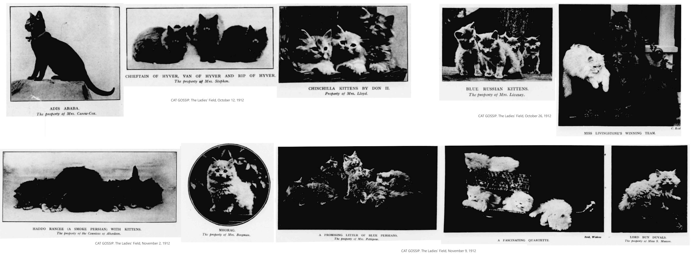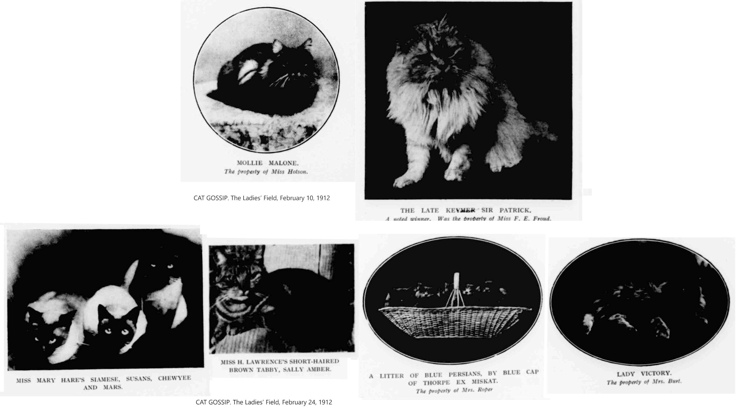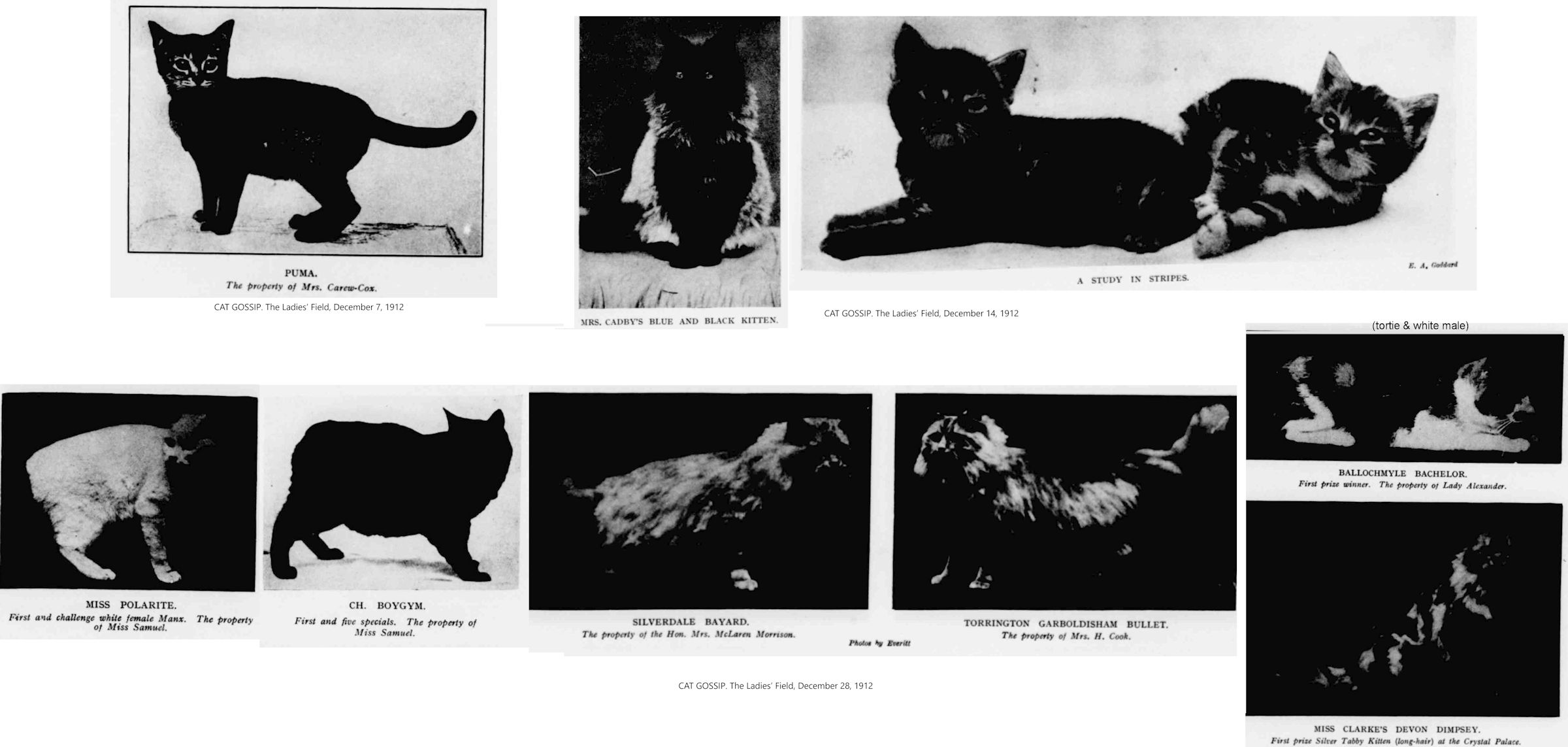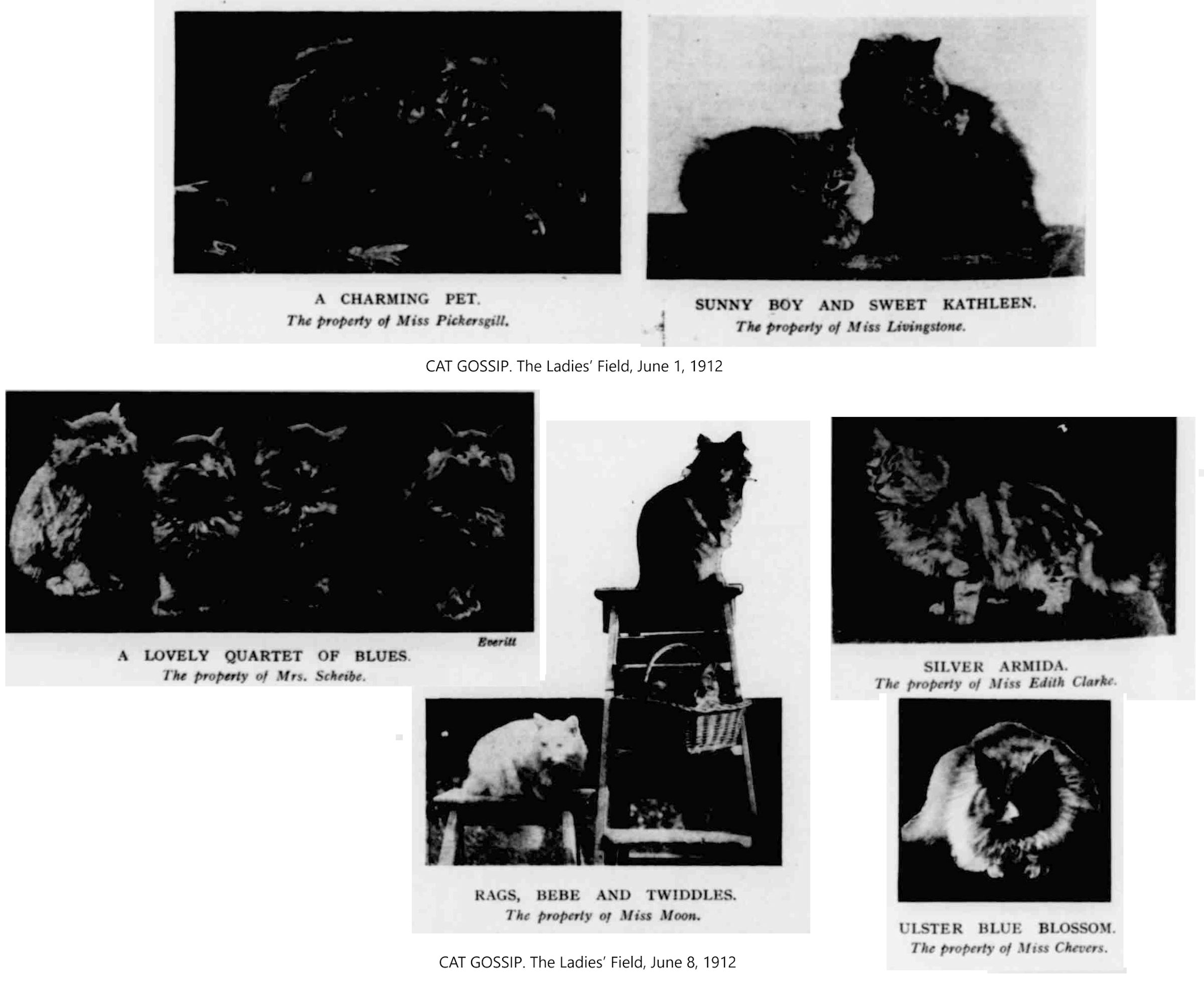 CAT GOSSIP. The Ladies' Field, January 6, 1912, pg 245.
